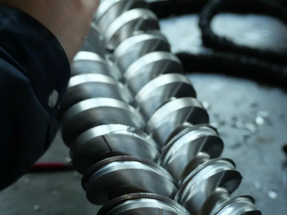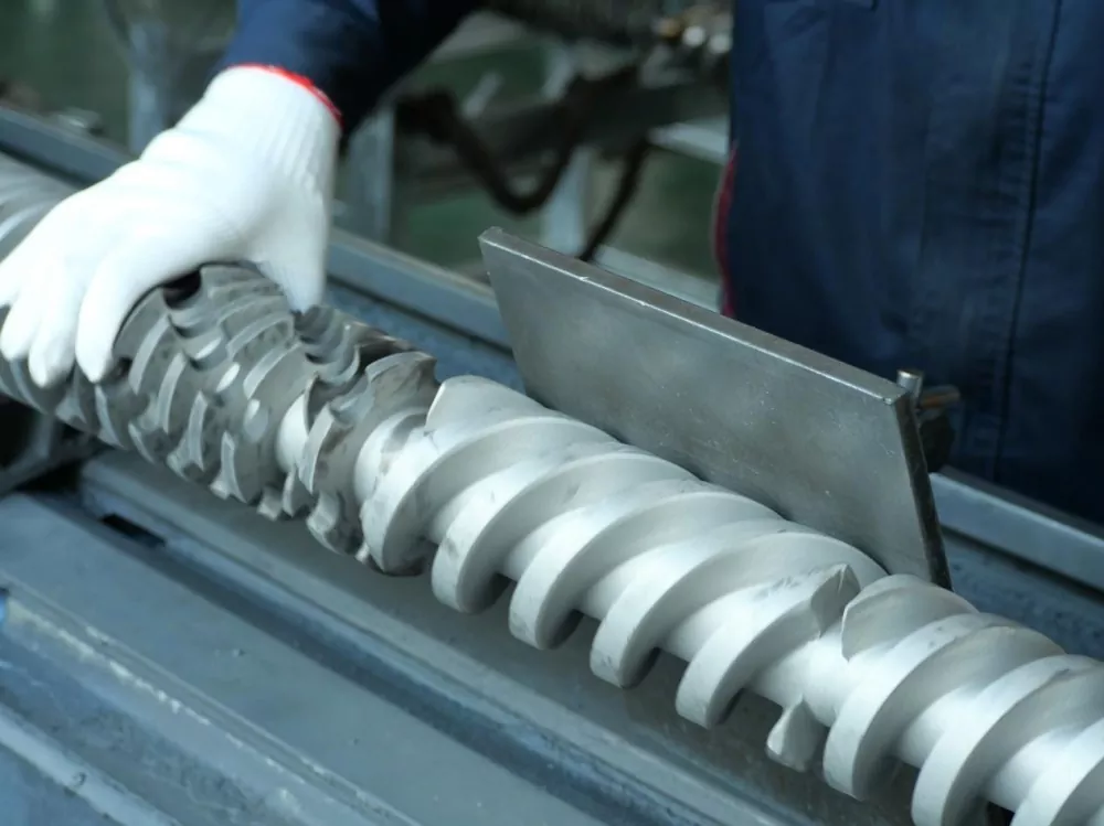 ਸਮੱਗਰੀ ਦੀ ਚੋਣ ਵੀ ਮਹੱਤਵਪੂਰਨ ਹੈ. ਸਾਡੇ ਪੇਚ ਉੱਚ-ਗੁਣਵੱਤਾ ਵਾਲੇ 38CrMoALA ਨਾਈਟ੍ਰਾਈਡ ਅਲਾਏ ਸਟੀਲ ਦੇ ਬਣੇ ਹੁੰਦੇ ਹਨ। ਇਹ ਸੱਤ-ਦਿਨ ਬੁਝਾਉਣ ਅਤੇ ਨਾਈਟ੍ਰਾਈਡਿੰਗ ਟ੍ਰੀਟਮੈਂਟ ਤੋਂ ਗੁਜ਼ਰਦਾ ਹੈ, ਨਤੀਜੇ ਵਜੋਂ 0.50-0.70mm ਮੋਟੀ ਨਾਈਟ੍ਰਾਈਡ ਪਰਤ ਅਤੇ HV950-1050 ਦੀ ਸਤਹ ਦੀ ਕਠੋਰਤਾ ਹੁੰਦੀ ਹੈ। ਇਹ ਪਦਾਰਥਕ ਵਿਸ਼ੇਸ਼ਤਾਵਾਂ 200°C ਦੇ ਆਸਪਾਸ ਤਾਪਮਾਨ 'ਤੇ ਵੀ ਸ਼ਾਨਦਾਰ ਪਹਿਨਣ ਪ੍ਰਤੀਰੋਧ ਨੂੰ ਯਕੀਨੀ ਬਣਾਉਂਦੀਆਂ ਹਨ, ਪਰੰਪਰਾਗਤ ਉਤਪਾਦਾਂ ਦੇ ਮੁਕਾਬਲੇ ਪੇਚ ਦੀ ਸੇਵਾ ਜੀਵਨ ਨੂੰ ਘੱਟੋ-ਘੱਟ ਇੱਕ-ਪੰਜਵਾਂ ਹਿੱਸਾ ਵਧਾਉਂਦੀਆਂ ਹਨ। ਇਹ ਵਿਸਤ੍ਰਿਤ ਵਰਤੋਂ 'ਤੇ ਸਤਹ ਦੇ ਪਹਿਨਣ ਦੇ ਕਾਰਨ ਮਰੇ ਹੋਏ ਕੋਨਿਆਂ ਵਿੱਚ ਸਮੱਗਰੀ ਦੇ ਨਿਰਮਾਣ ਨੂੰ ਰੋਕਦਾ ਹੈ।